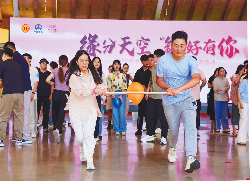 8月28至29日,中铁四局工会、团委联合南通市总工会在江苏南通举办“缘分天空 ‘钢’好有你”交友联谊活动,中铁四局及南通市部分企事业单位100名青年员工参加。图为心动运输线游戏环节。 李永 摄