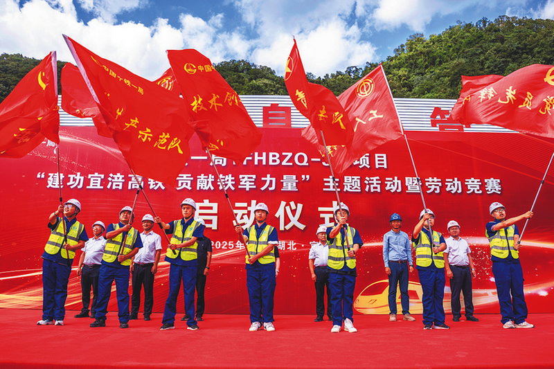 近日,中铁一局宜涪高铁3标项目部在亭子山隧道出口举行“建功宜涪高铁贡献铁军力量”主题活动暨劳动竞赛启动仪式,激励参建员工围绕重点工程全面攻坚,确保顺利完成年度施工目标。图为授旗仪式。 苏世涛 徐晴晴 邓少博 摄影报道