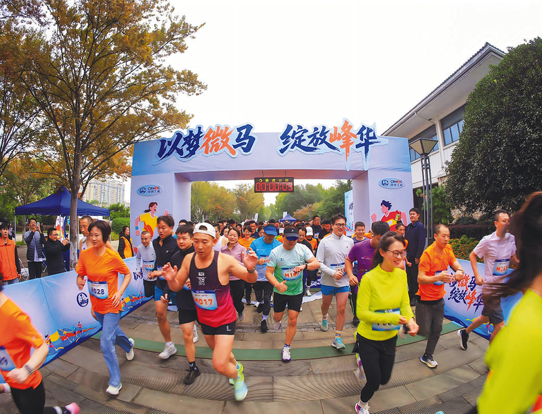 10月26日,由中铁工业工会主办、中铁科工工会协办的中铁工业首届职工微马大赛在武汉东湖举行,338名员工参赛。本次比赛特别设置趣味嘉年华环节,让赛场成为员工交流互动的“欢乐磁场”。图为比赛盛况。 夏威 胡鹏 摄影报道