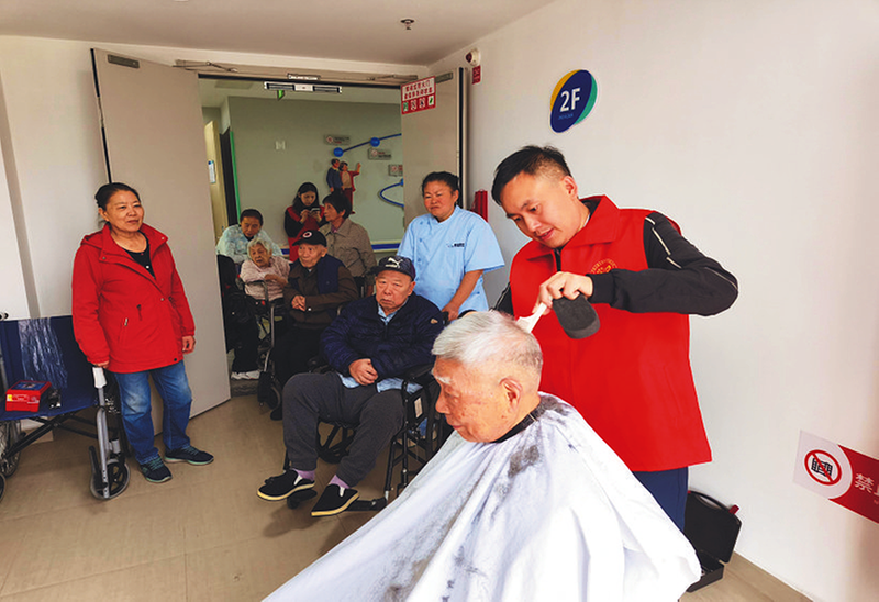 10月26日,中铁上海局建筑公司金安国纪总部项目部到九里亭街道养老院开展节日慰问、知识科普、义务理发等活动,为老人们送去温暖与关怀。 朱凤志 苏子豪 摄影报道
