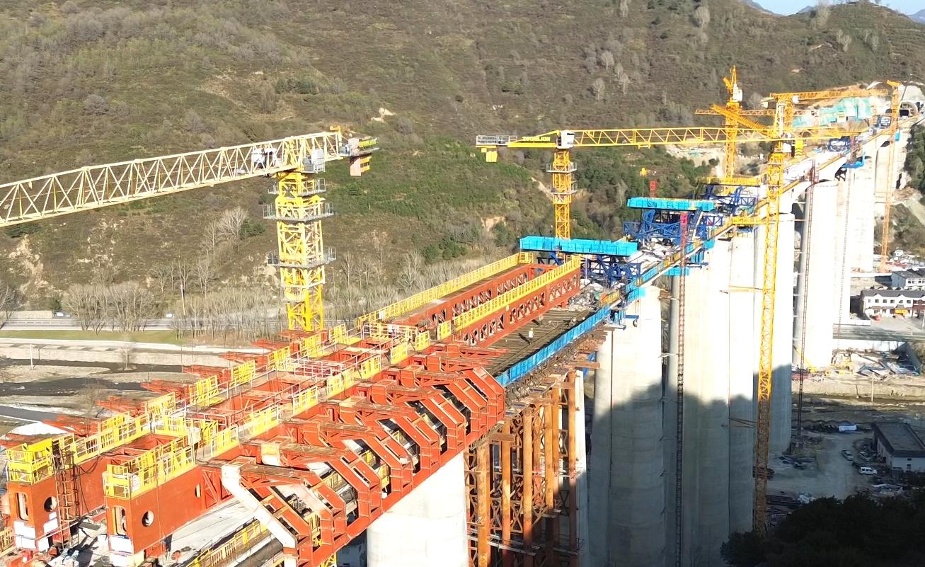 11月1日,中铁隧道局承建的雄忻高铁全线最高桥——清水河特大桥合龙,该桥全长约1.4公里,跨越五台山风景区旅游主干道及清水河,共设36个墩,最高墩柱75.5米,梁体上部结构全部采用现浇法施工,融合了悬臂挂篮、移动模架、支架现浇等多种工艺。