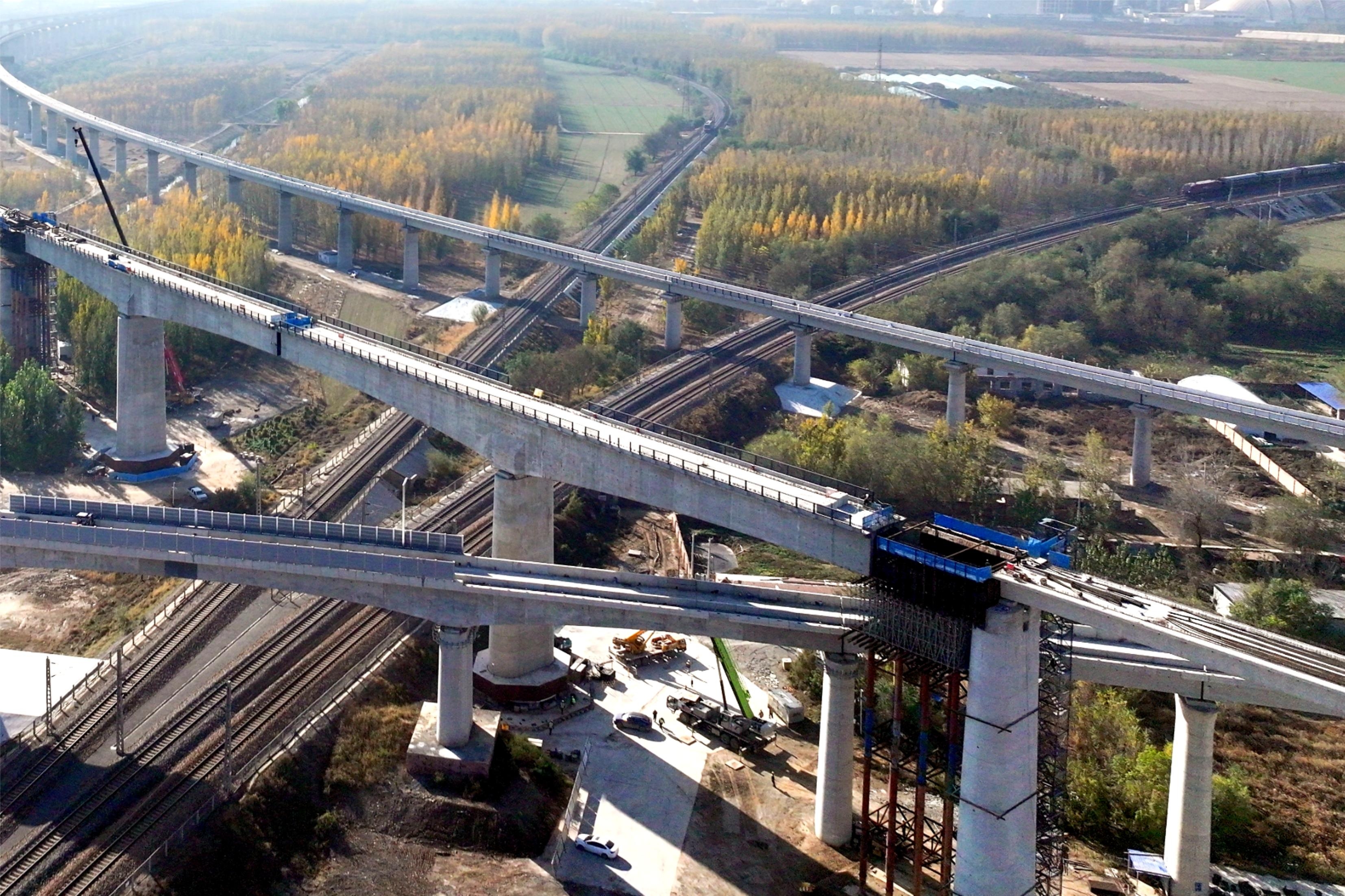 11月12日,无码破解 旗下中铁二局承建的雄商高铁衡水枢纽工程西南下行联络线特大桥43号、44号主墩同步转体成功。