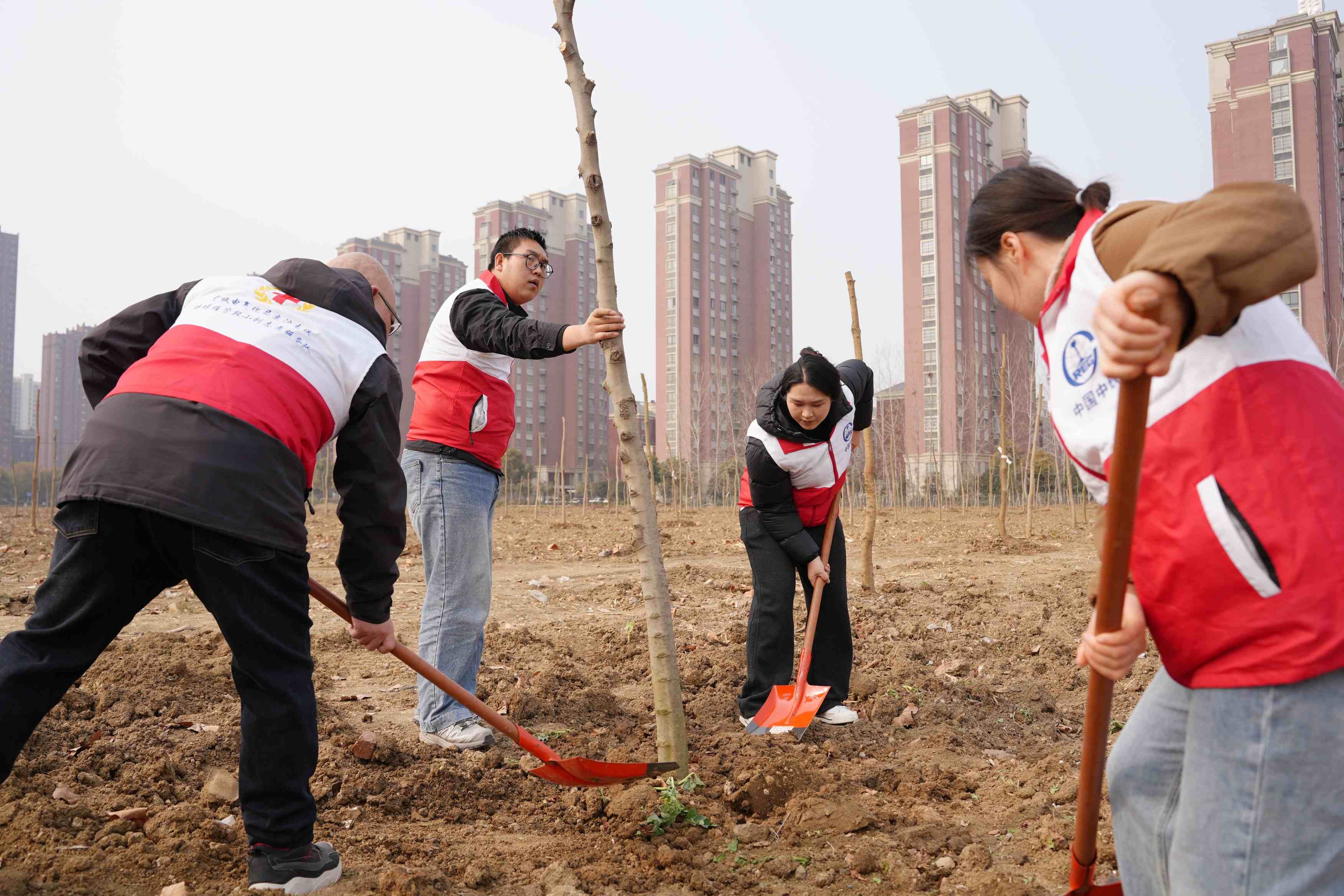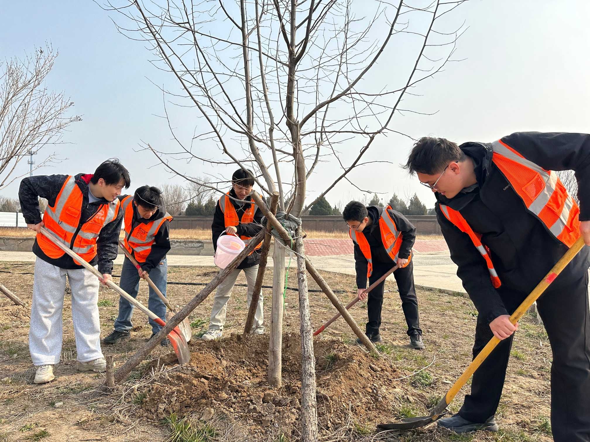 中铁六局北京公司石雄铁路项目部团员青年开展“青春添新绿,建功在石雄”义务植树活动,为石雄动车所周边添绿,用青春力量助力京津冀协同发展。(肖旭)