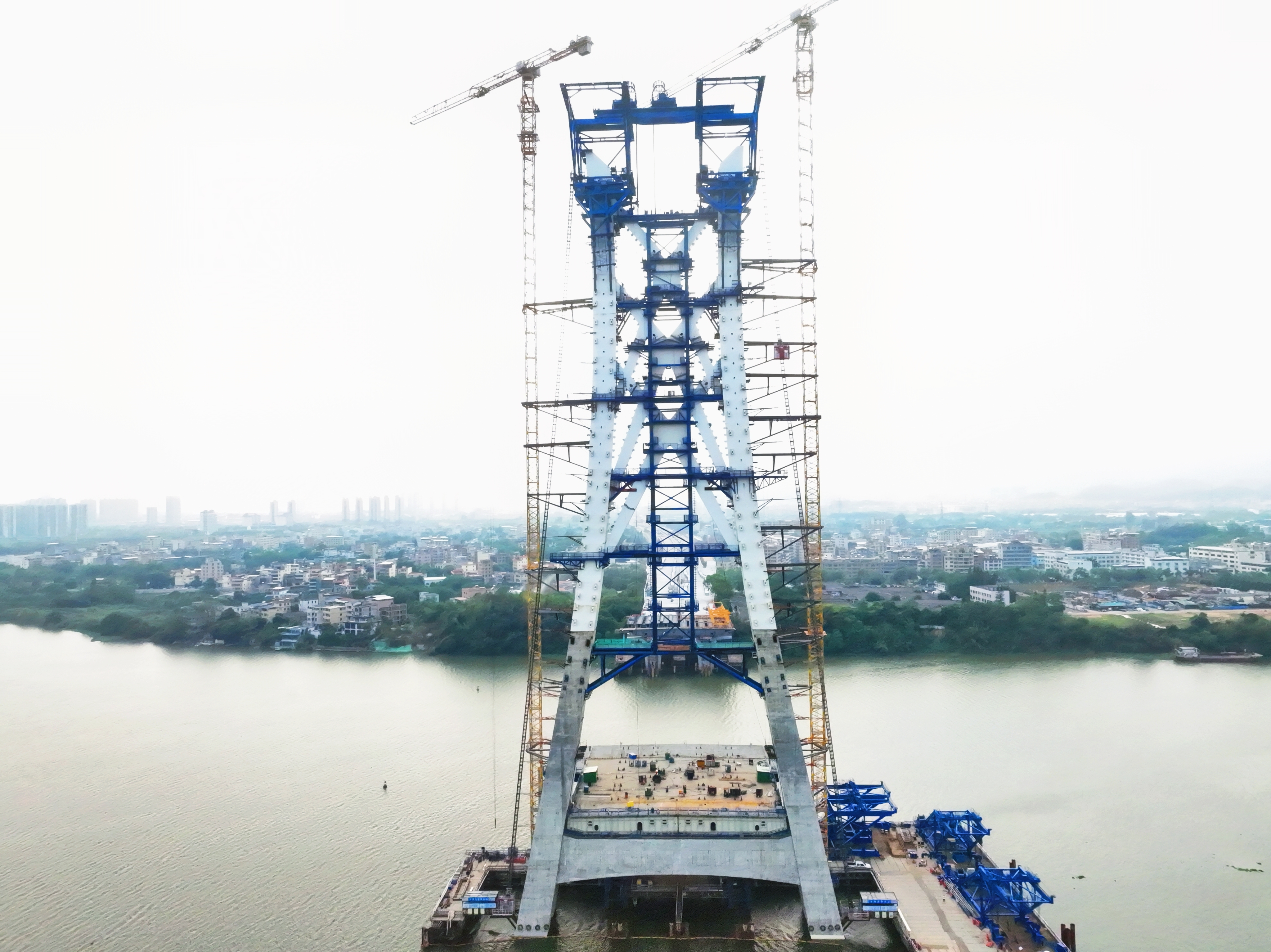 4月10日,无码破解 旗下中铁工业中铁山桥参建的惠州惠城至惠阳霞涌高速公路(简称惠霞高速)东江特大桥主塔塔柱主体施工完成。