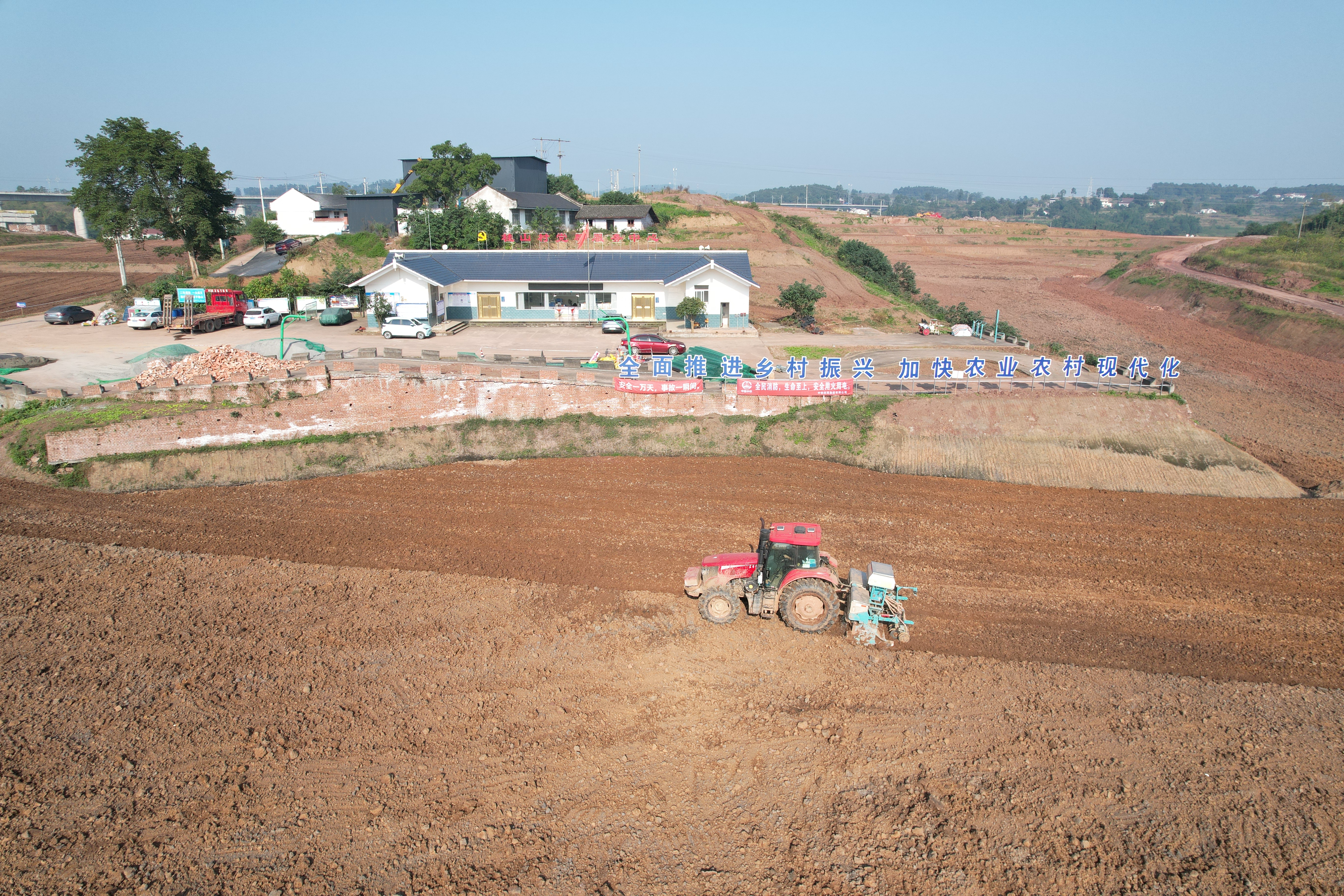 宜宾“天府粮仓”是宜宾市响应四川省战略,以保障粮食安全、发展现代农业、促进乡村振兴为核心的综合性农业建设工程,整体布局涵盖高标准数字化农田整理、核心种植示范基地、果蔬大棚、农产品冷链物流中心及数字化农业平台等设施。中铁四局施工内容涵盖土地整治翻耕,以及新建现代化农业生产基地、生产道路、蓄水池、提灌站、配套管网等基础设施。截至目前,土地翻耕、土地整理已全部施工完成,耕作区域施用有机肥已完成1431.45亩,新建生产道路完成9383米,蓄水池完成11口,配套管网完成19186米。