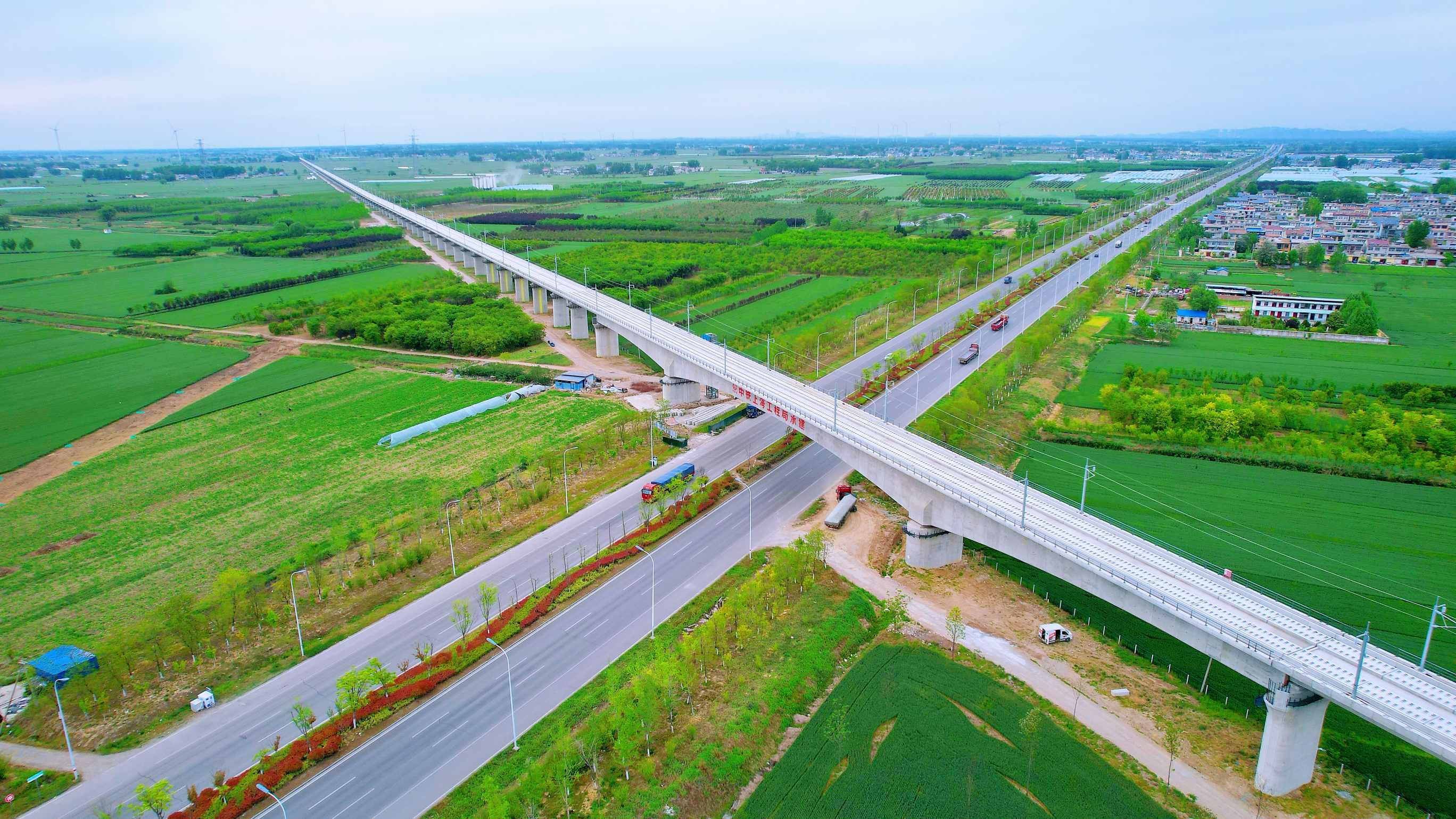 无码破解 旗下中铁上海局参建的淮北至宿州至蚌埠城际铁路(简称淮宿蚌城际铁路)位于安徽省北部,正线全长约160.5公里。中铁上海局承建的Ⅱ标段位于宿州市、淮北市境内,线路全长39.78公里,施工内容包括桥梁、路基、轨道等工程。