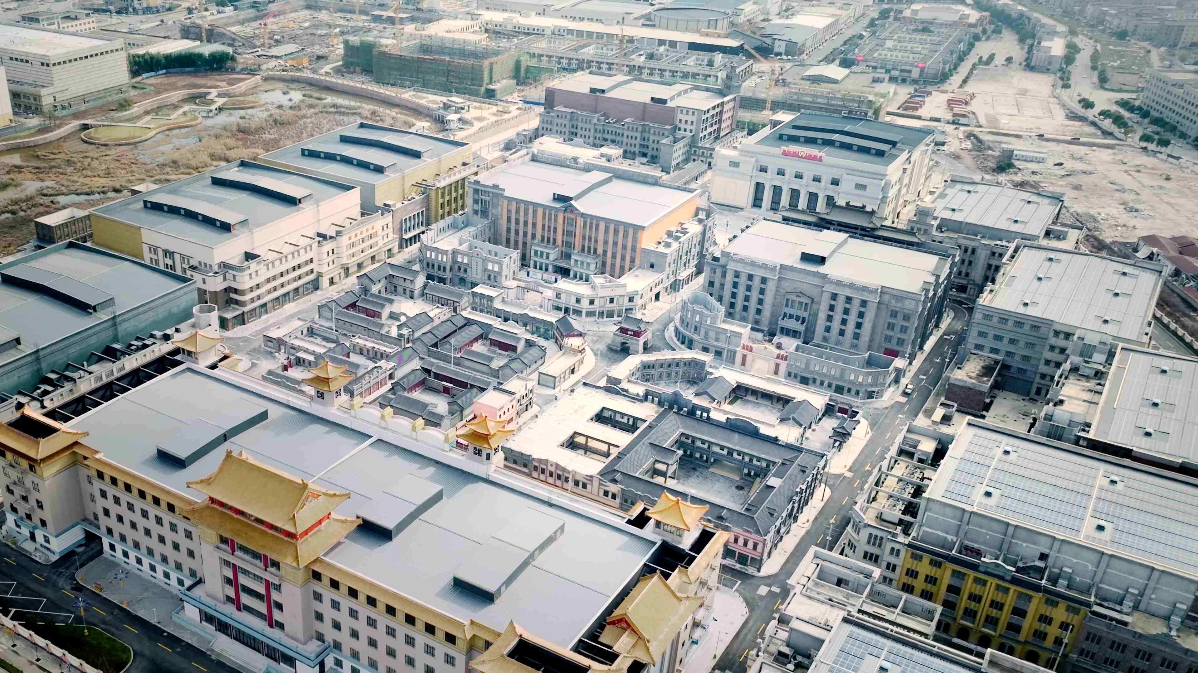 横店影视产业园项目包括1座全球面积最大的摄影棚,2座国内最先进的综艺棚、水面棚等,整体外立面为国内最大型解放后至改革开放前时期的现代戏基地。项目于2022年11月完工。