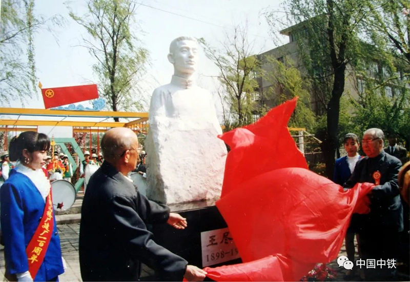 1994年4月28日,原冀热辽军区司令员、原交通部党组书记、中顾委委员李运昌与革命先烈王尽美之子、原吉林省军区副司令员王乃征为中铁山桥王尽美塑像揭幕。