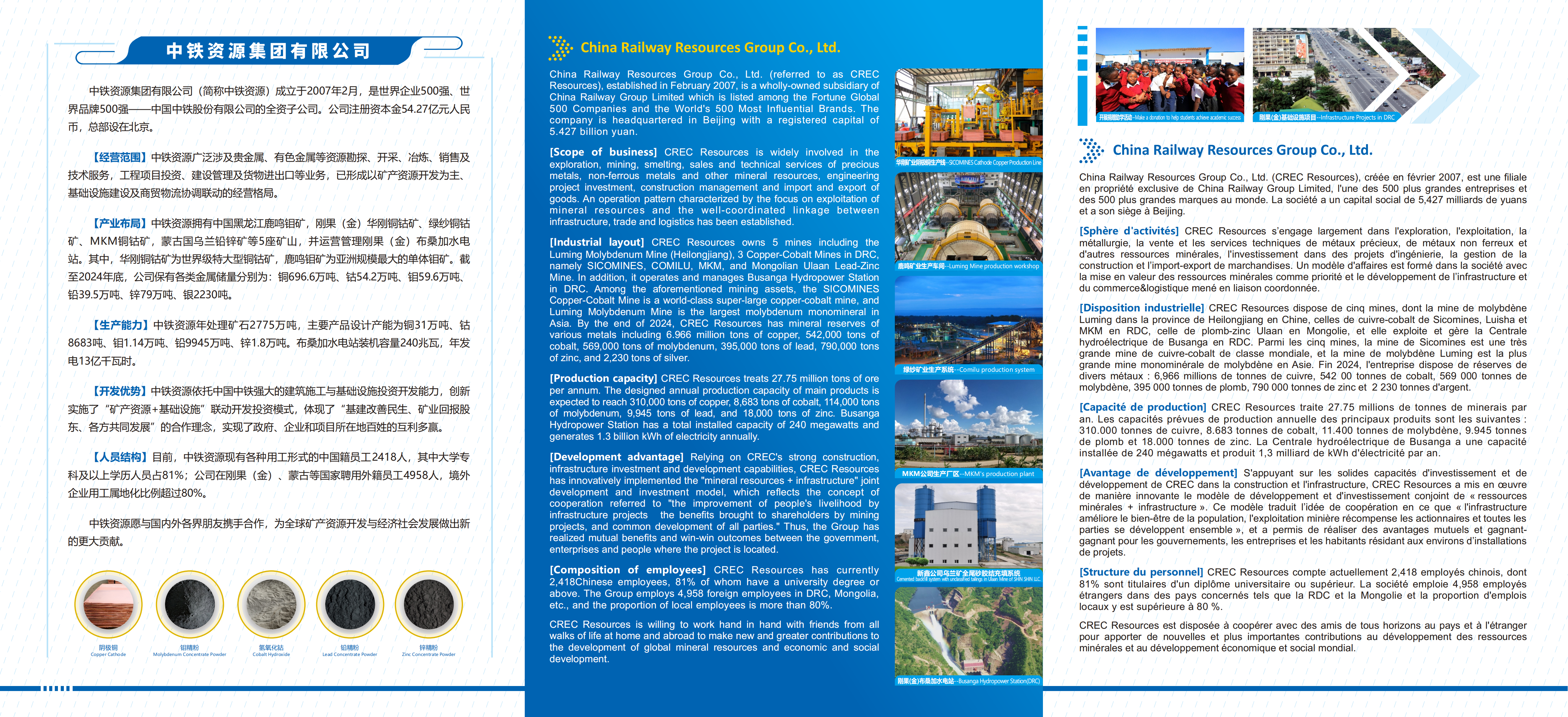 China Railway Resources Group Co., Ltd. (referred to as CREC Resources), established in February 2007, is a wholly-owned subsidiary of China Railway Group Limited (CREC), which is listed among the Fortune Global 500 Companies and the World's 500 Most Influential Brands. The company is headquartered in Beijing with a registered capital of 5.427 billion yuan.